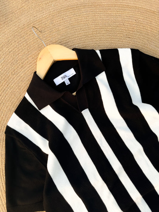 Executive Knitted Polo - Black with White