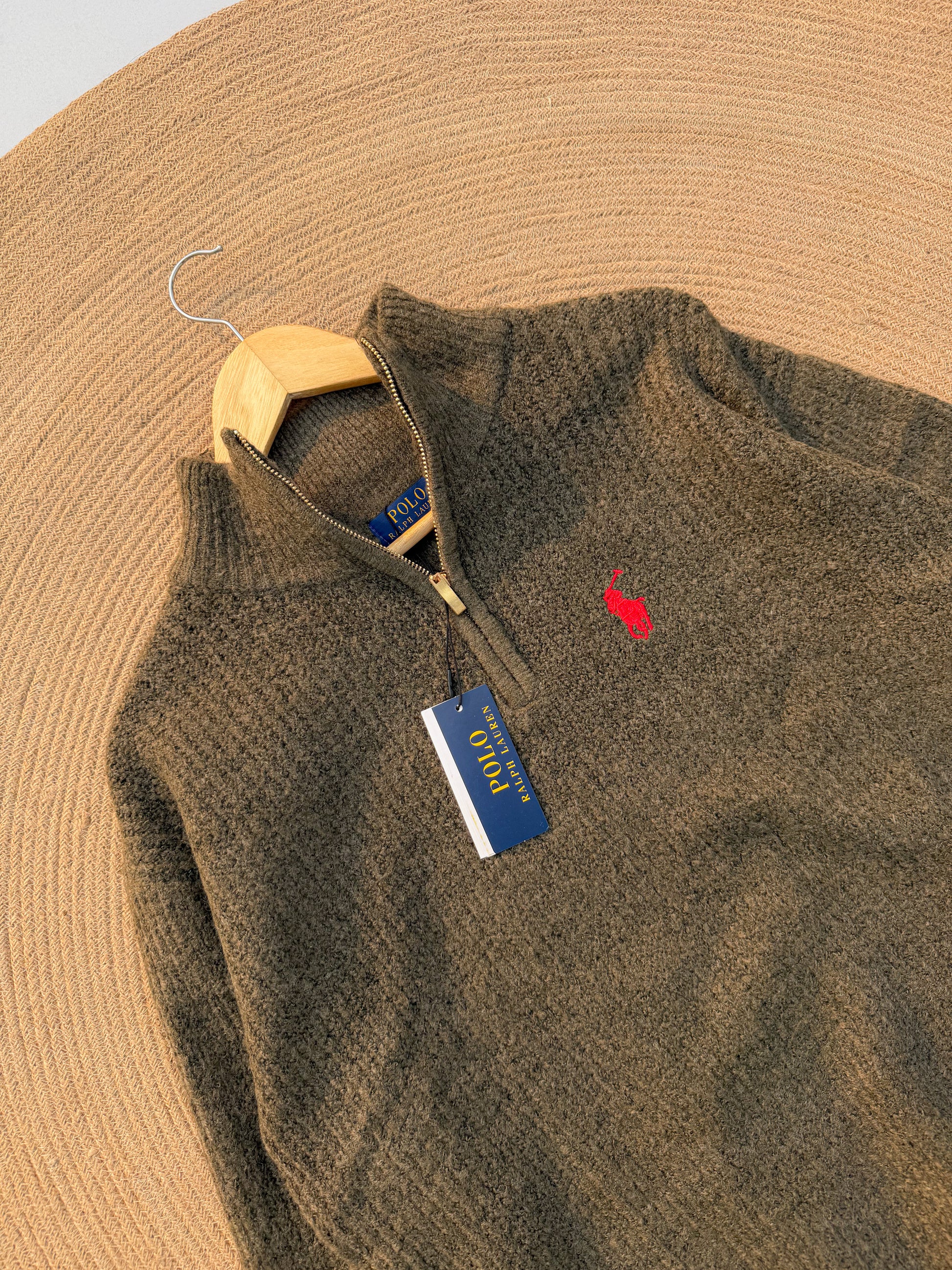 - Premium knitted half-zip sweater